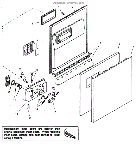 This inner door is the interior panel for a dishwasher door that protects internal components and provides a finished inside surface. Replacing a damaged inner door restores proper sealing and appearance. What it does: