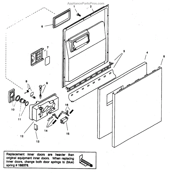 • Forms the interior surface of the dishwasher door and helps contain water during cycles