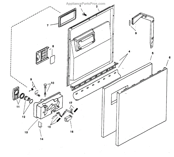 This outer door is the dishwasher's exterior front panel that restores the appliance's appearance and protects internal components from damage. It provides a finished look and replaces dented, scratched, or corroded panels. What it does
