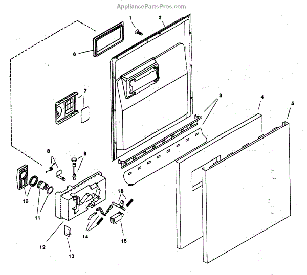 This outer door is the dishwasher's exterior front panel that restores the appliance's appearance and protects internal components from damage. It provides a finished look and replaces dented, scratched, or corroded panels. What it does