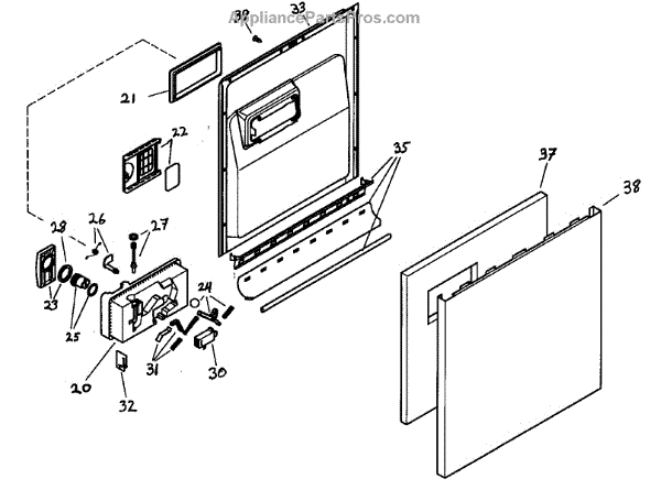 The Rinse Aid Door (with Gasket) is an OEM replacement part for Bosch dishwashers. It is responsible for covering and sealing the rinse aid dispenser. Problems with a rinse aid door can cause leaks during washing.