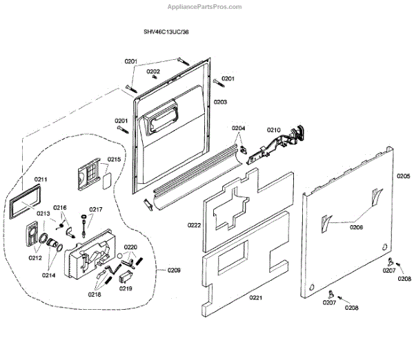 Parts for Bosch SHV46C13UC/36: Door Assembly Parts