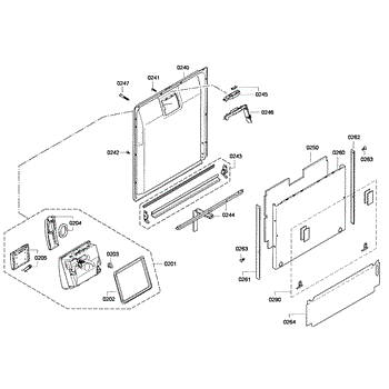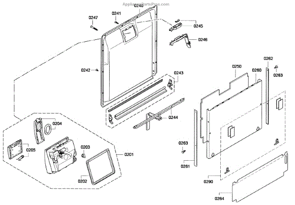 This inner door panel replaces a damaged or worn dishwasher door interior to restore proper door fit and help prevent leaks and rattling. It fits behind the outer door and supports the latch and internal components. What it does