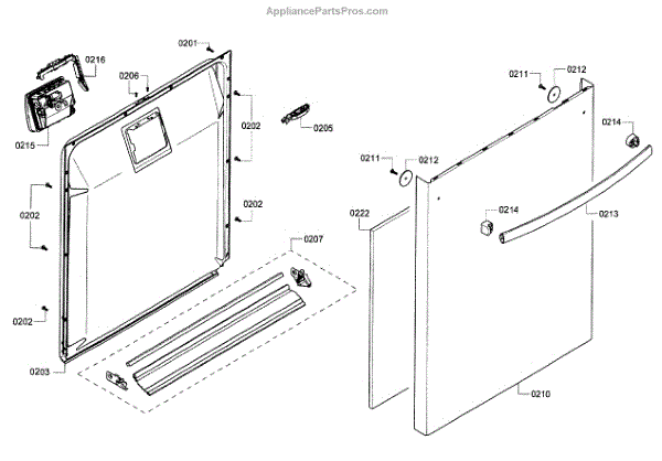 This outer door is the dishwasher's front outer panel that restores the door's appearance and protects internal components from damage. Use it when the door is dented, scratched, or cracked to improve looks and function. What it does: