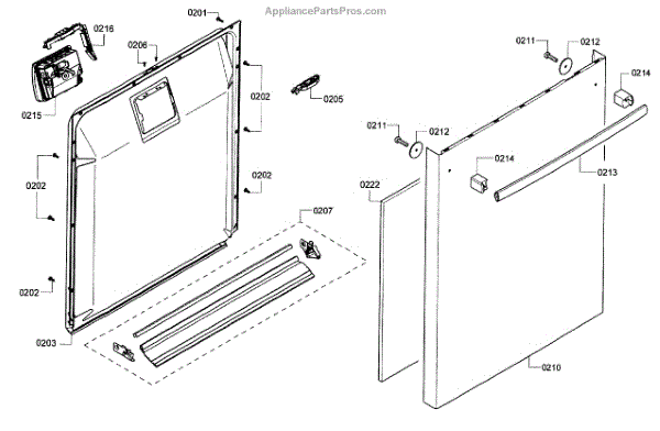 The Dishwasher Inner Door Panel is an OEM part for Bosch dishwashers. It is located inside the dishwasher door and protects internal components.