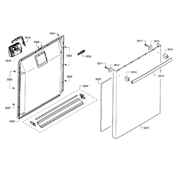 The Dishwasher Inner Door Panel is an OEM part for Bosch dishwashers. It is located inside the dishwasher door and protects internal components.