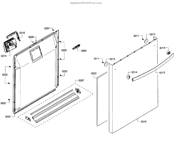 This outer door is the dishwasher's front outer panel that restores the door's appearance and protects internal components from damage. Use it when the door is dented, scratched, or cracked to improve looks and function. What it does: