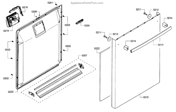 This outer door is the dishwasher's front outer panel that restores the door's appearance and protects internal components from damage. Use it when the door is dented, scratched, or cracked to improve looks and function. What it does: