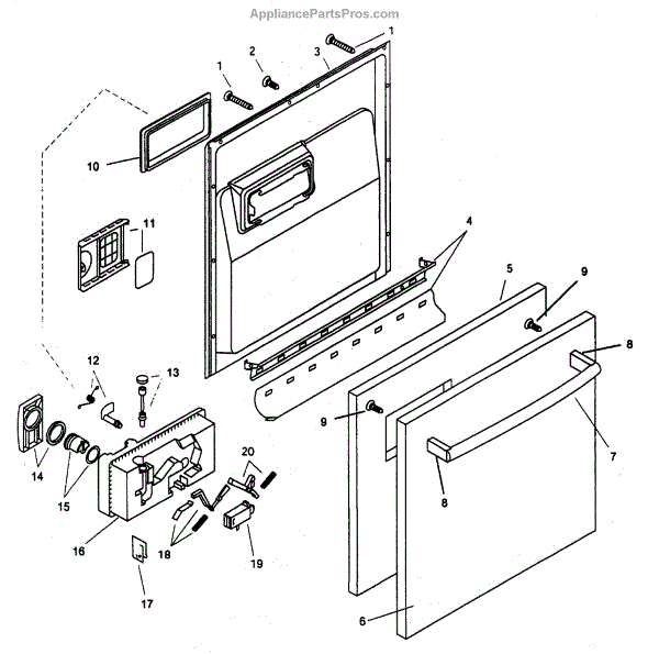 This inner door is the interior panel for a dishwasher door that protects internal components and provides a finished inside surface. Replacing a damaged inner door restores proper sealing and appearance. What it does:
