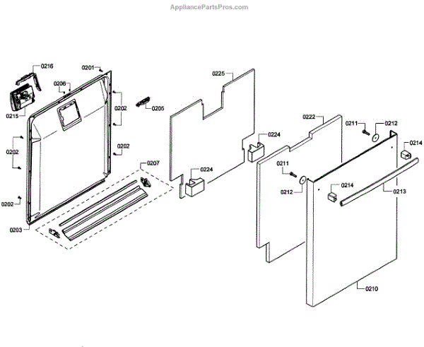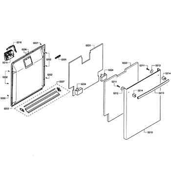 The Dishwasher Inner Door Panel is an OEM part for Bosch dishwashers. It is located inside the dishwasher door and protects internal components.