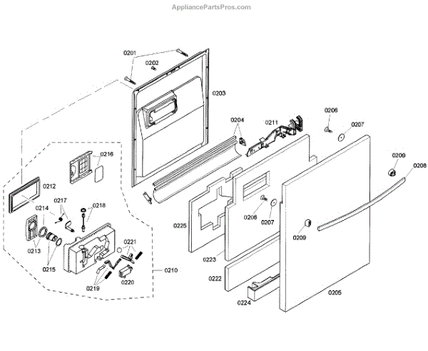 The Rinse Aid Door (with Gasket) is an OEM replacement part for Bosch dishwashers. It is responsible for covering and sealing the rinse aid dispenser. Problems with a rinse aid door can cause leaks during washing.