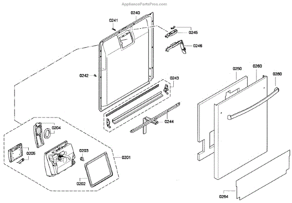 This inner door panel replaces a damaged or worn dishwasher door interior to restore proper door fit and help prevent leaks and rattling. It fits behind the outer door and supports the latch and internal components. What it does