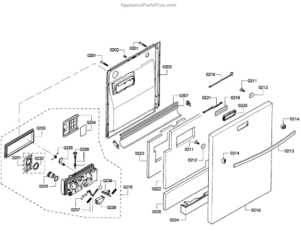 • Forms the interior surface of the dishwasher door and helps contain water during cycles