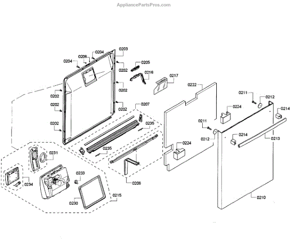 This inner door panel forms the inside surface of the dishwasher door. It supports key door components and helps seal the tub, keeping water and heat contained for reliable, quiet operation.