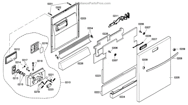 The Rinse Aid Door (with Gasket) is an OEM replacement part for Bosch dishwashers. It is responsible for covering and sealing the rinse aid dispenser. Problems with a rinse aid door can cause leaks during washing.