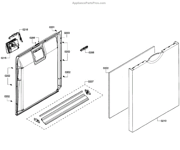 The Dishwasher Inner Door Panel is an OEM part for Bosch dishwashers. It is located inside the dishwasher door and protects internal components.