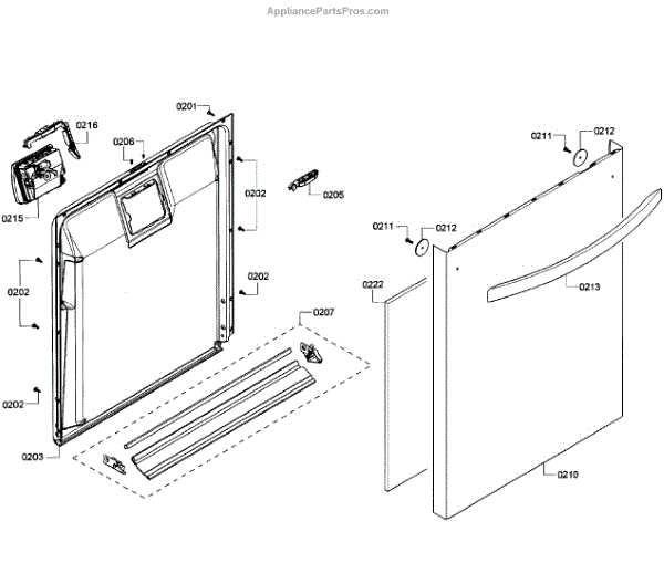 The Dishwasher Inner Door Panel is an OEM part for Bosch dishwashers. It is located inside the dishwasher door and protects internal components.