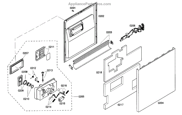 • Forms the interior surface of the dishwasher door and helps contain water during cycles