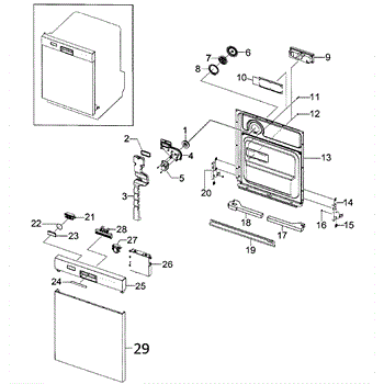 Replace your dishwasher's front tub assembly if it's cracked, broken, or leaking. This structural component forms the wash chamber and door seal area.