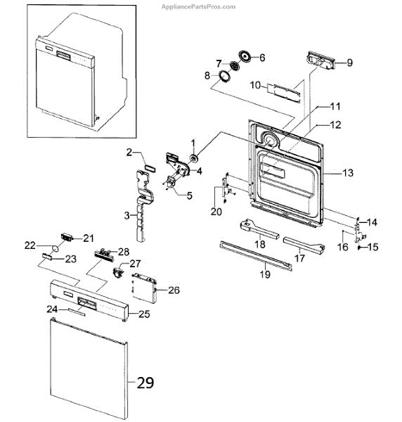 Maintains proper alignment between dishwasher door components. Replace if cracked, broken, or missing to ensure secure door operation and fit.