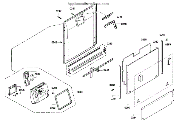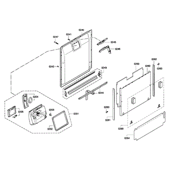 This inner door panel replaces a damaged or worn dishwasher door interior to restore proper door fit and help prevent leaks and rattling. It fits behind the outer door and supports the latch and internal components. What it does