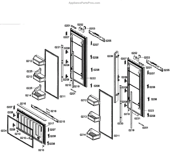 Freezer compartment door for bottom-mount refrigerators. Replaces cracked, broken, or damaged doors that no longer seal properly or are structurally compromised.