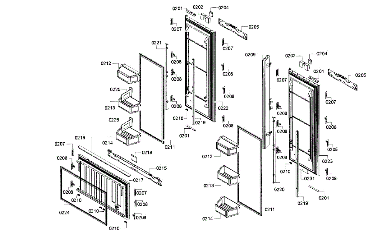 Freezer compartment door for bottom-mount refrigerators. Replaces cracked, broken, or damaged doors that no longer seal properly or are structurally compromised.