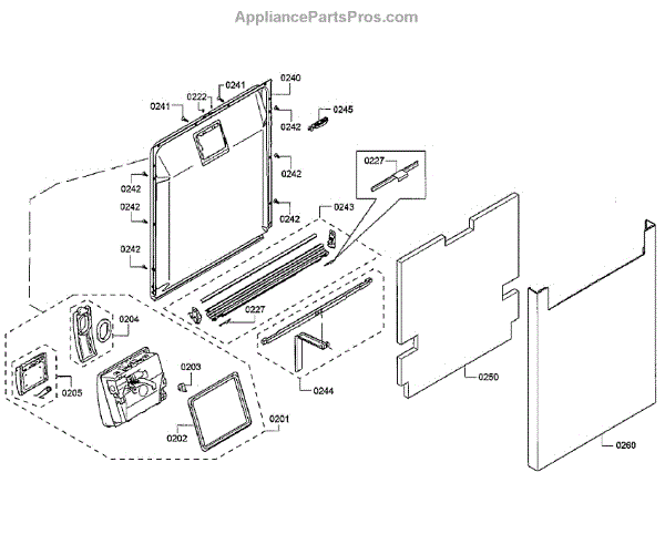 Parts for Bosch SHE53TF6UC/09: Door Asy Parts