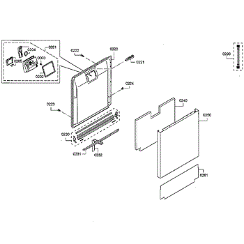 This inner door panel replaces a damaged or worn dishwasher door interior to restore proper door fit and help prevent leaks and rattling. It fits behind the outer door and supports the latch and internal components. What it does
