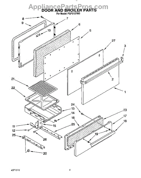 Parts for Roper FGP310YW0: 04 - Door And Broiler Parts