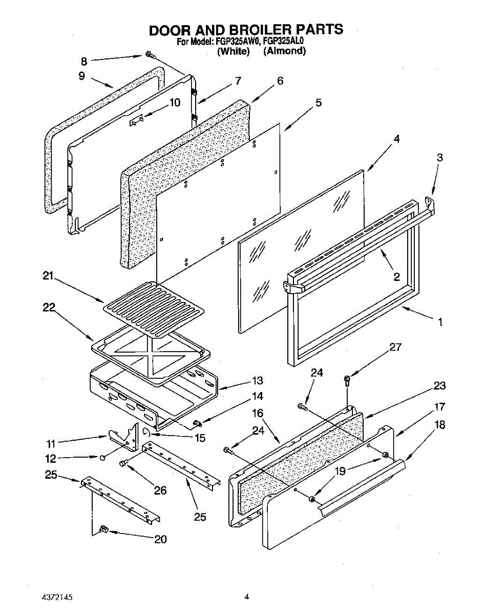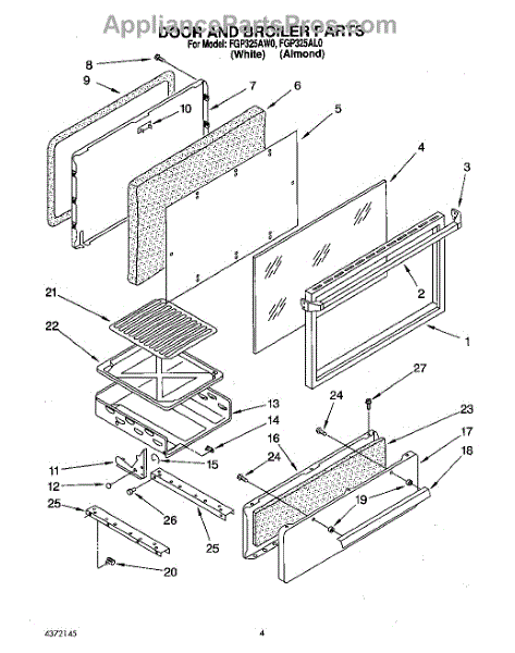 Parts for Roper FGP325AW0: 03 - Door And Broiler Parts