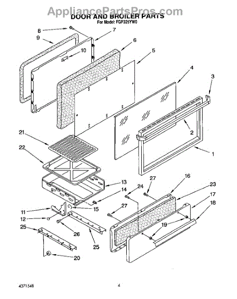 Parts for Roper FGP325YW0: 04 - Door And Broiler Parts