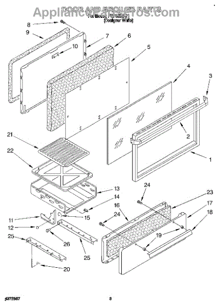 Parts for Roper FGP335BQ1: 03 - Door And Broiler Parts