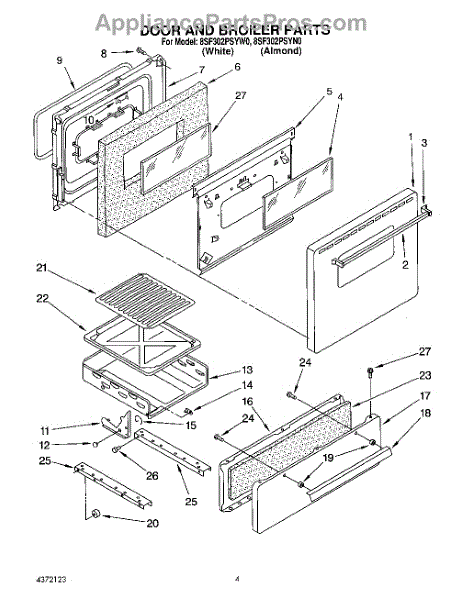 Parts for Whirlpool 8SF302PSYW0: 03 - Door And Broiler Parts