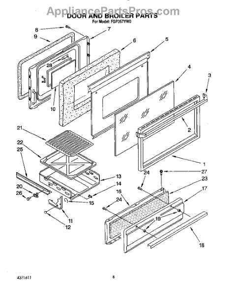 Parts for Whirlpool FGP357YL0: 07 - Door And Broiler Parts