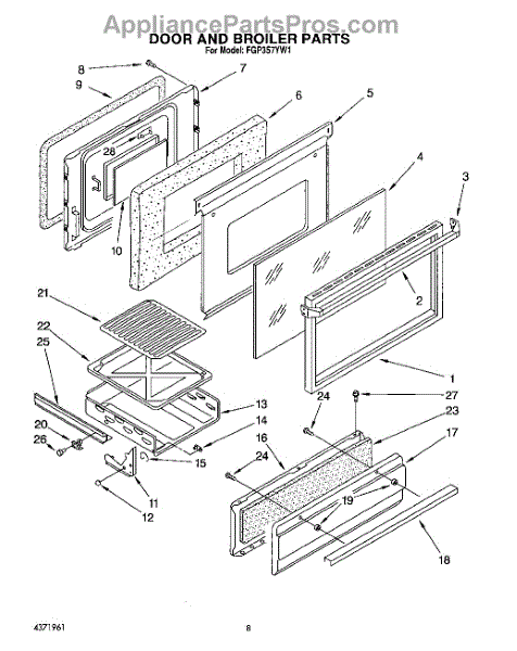 Parts for Whirlpool FGP357YL1: 07 - Door And Broiler Parts