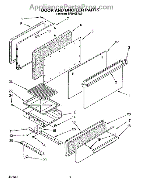 Parts for Whirlpool SF3000SYW0: 04 - Door And Broiler Parts