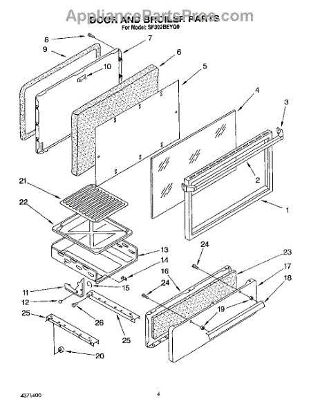 Parts for Whirlpool SF302BEYQ0: 04 - Door And Broiler Parts