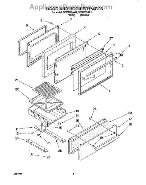 Parts for Whirlpool SF302BSAN1: 03 - Door And Broiler Parts