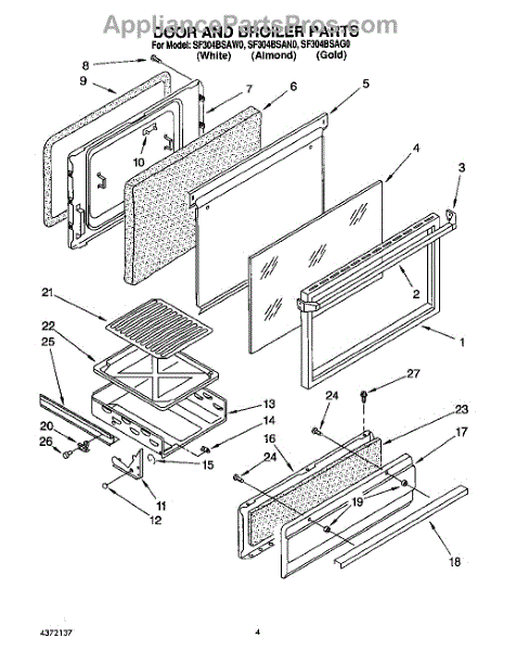 Parts for Whirlpool SF304BSAN0: 03 - Door And Broiler Parts