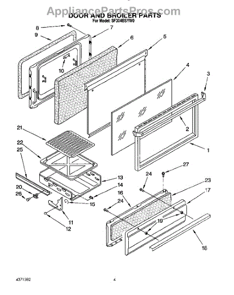 Parts for Whirlpool SF304BSYN0: 04 - Door And Broiler Parts