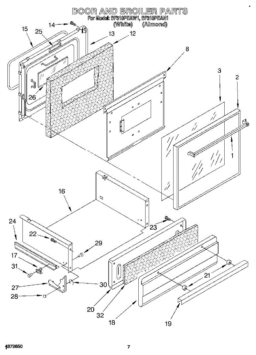 Parts for Whirlpool SF310PEAW1: 06 - Door And Broiler Parts