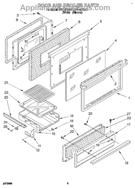 Parts for Whirlpool SF314PEAN1: 03 - Door And Broiler Parts