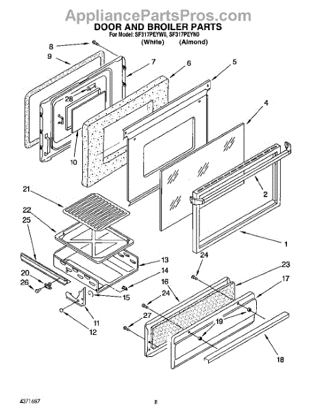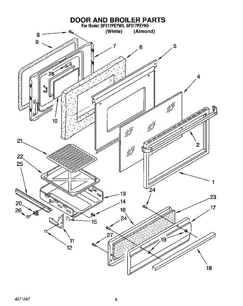 Parts for Whirlpool SF317PEYW0: 07 - Door And Broiler Parts