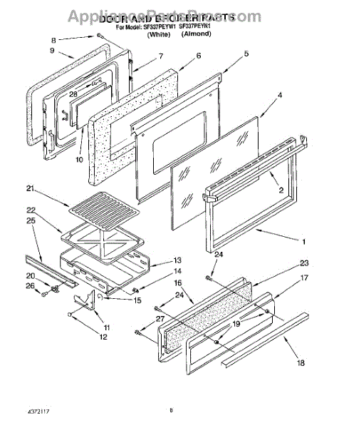 Parts for Whirlpool SF337PEYN1: 06 - Door And Broiler Parts