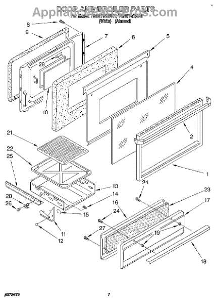 Parts for Whirlpool TGR61W2BN1: 06 - Door And Broiler Parts