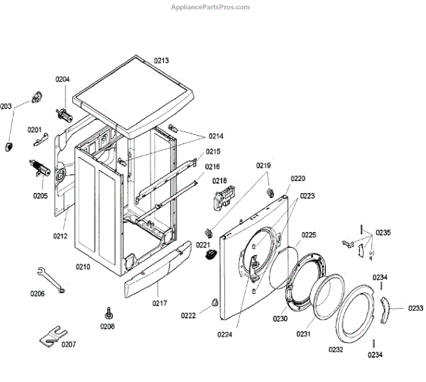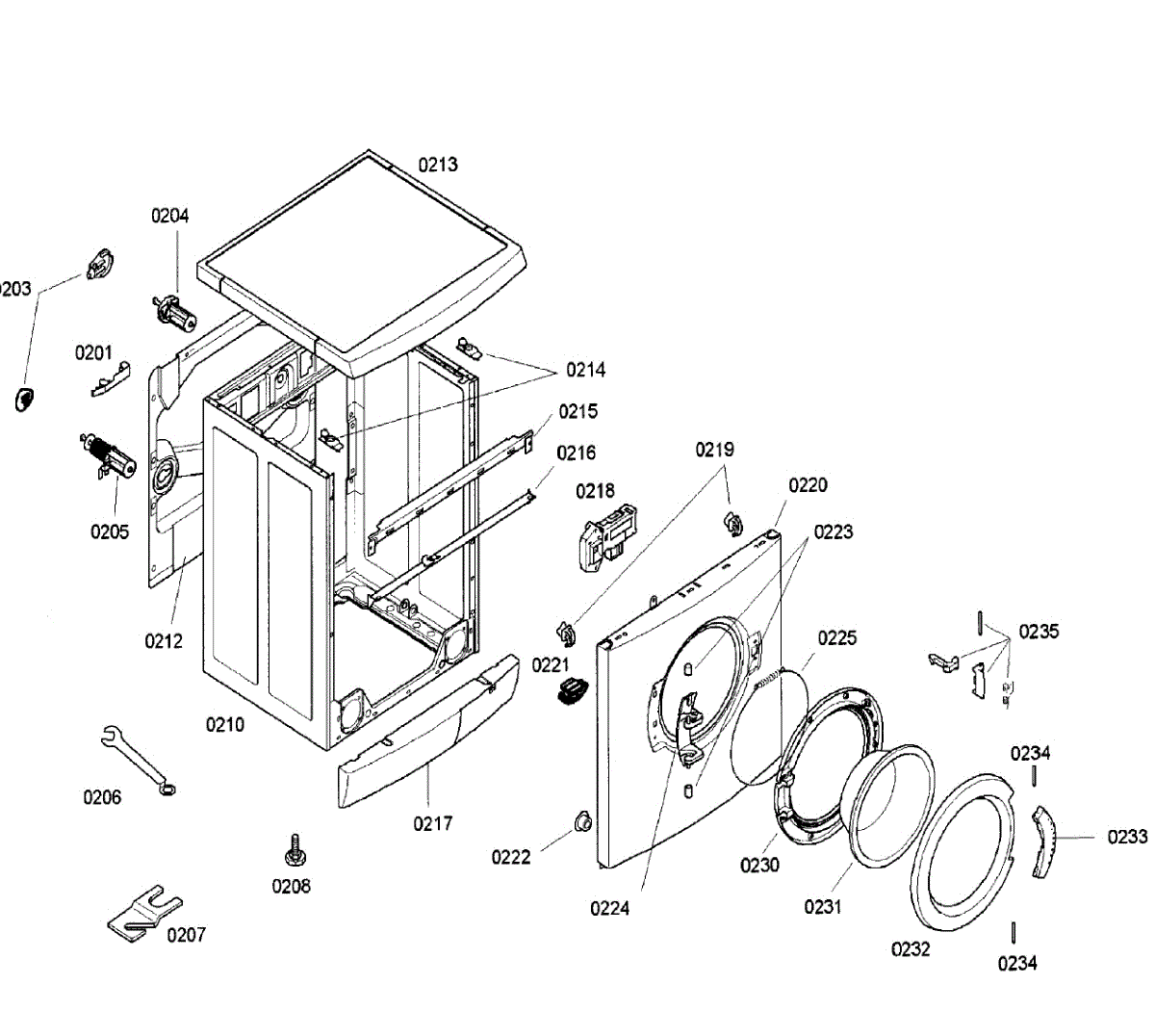 Outer door panel that frames the washer door glass and interfaces with handle/latch components. Replace if cracked, broken, or damaged to restore appearance.