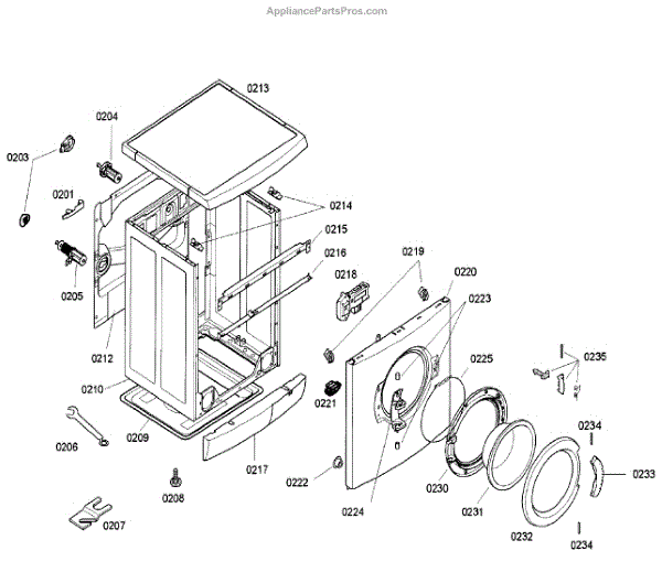 The Fastening Ring is an OEM part for Bosch front load washers. It secures the door boot seal to the front panel of the washer, ensuring a tight and leak-free connection. This ring is essential for maintaining the washer's seal during operation, preventing water from escaping the drum.