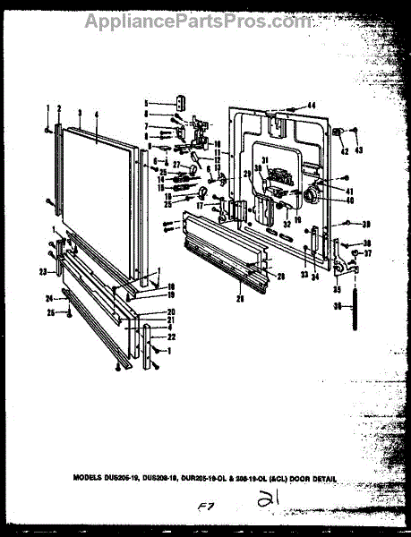 Parts for Caloric DUR208-19-CL: Door Detail (Dus205-19) (Dur205-19-Ol) (Dus208-19) (Dur208-19-Ol) (Dur208-19-Cl) Parts