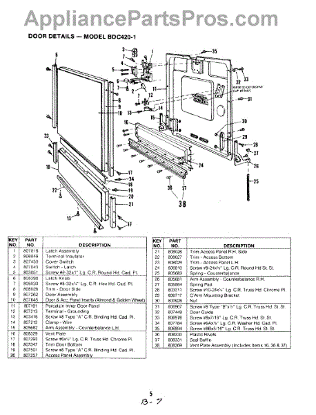 This factory screw secures appliance components to their mounting points. Replace missing, worn, or stripped hardware to restore a tight fit, proper alignment, and quieter operation across the affected assembly.